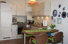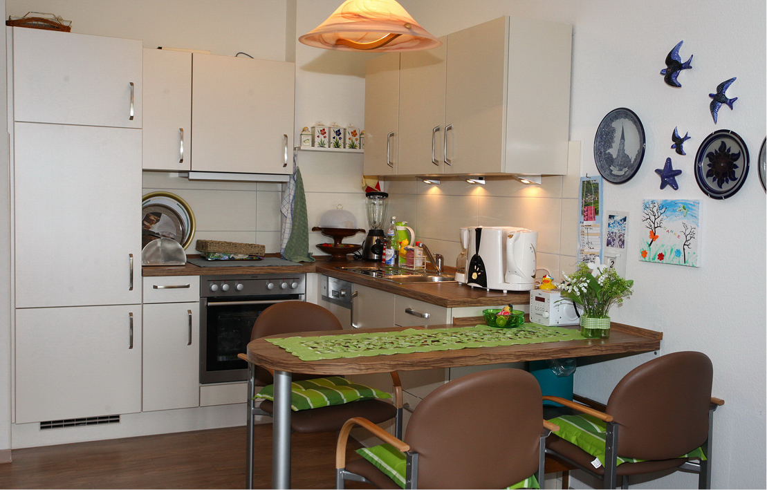 Die Wohnungen im Altbau sind zwischen 40 und 56 qm groß und bestehen aus Wohnzimmer, Schlafzimmer, Küche, Dusche und Diele, sowie einem kleinen Abstellraum im Keller.